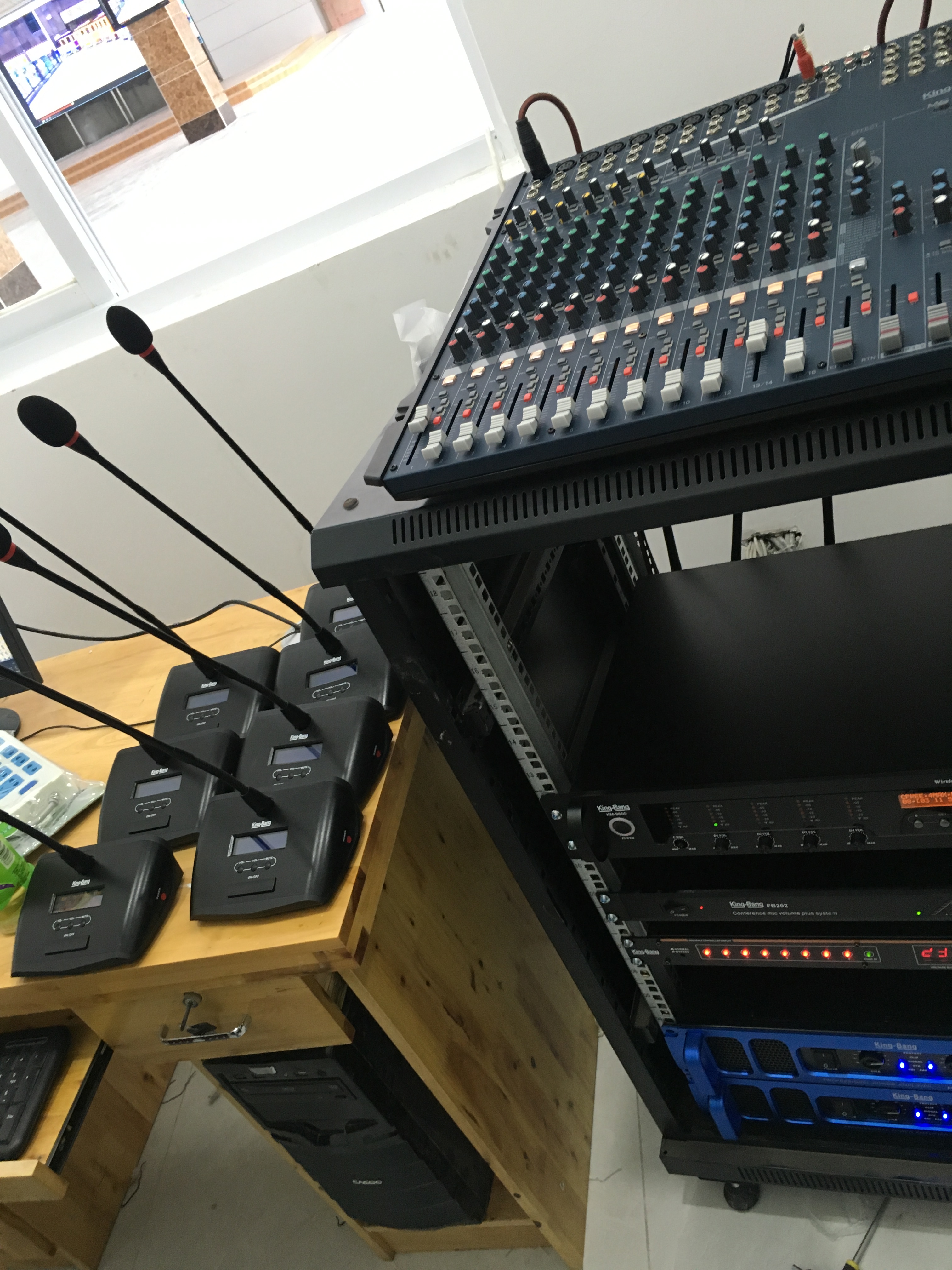 經(jīng)過分析對(duì)比,再結(jié)合現(xiàn)場情況及客戶的使用需求,京邦電子(KING-BANG)為項(xiàng)目設(shè)計(jì)了一套靈活方便的會(huì)議系統(tǒng)方案。以KM-9600系列為主導(dǎo),搭配高保真的超心型指向電容會(huì)議話筒。主機(jī)可以設(shè)置“有聲控模式”、“先進(jìn)先出模式”、“后進(jìn)先出模式”、“主席模式”、“全開模式”和“搶答模式”等發(fā)言模式,系統(tǒng)也可自動(dòng)發(fā)言時(shí)間與定時(shí)發(fā)言時(shí)間,讓負(fù)責(zé)會(huì)議的人員更加方便地管理與會(huì)人員的參與發(fā)言,會(huì)場發(fā)言更加穩(wěn)而有序