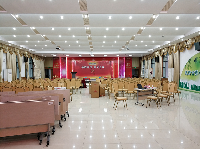專業擴聲系統簡單來說就是把聲音信號放大,主要由聲源、音頻處理設備、功放及揚聲器系統組成。通過計算會議室的音響場地系數進行設計,保證會議室每個角落的聲場聽覺均勻,音響效果達到語言清晰、無失真、聲場分布均勻。
